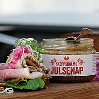Skeppskolms julsenap som är sötsyrlig, grov och kryddig. Perfekt till julskinkan! Skeppsholms Senap vispar sina skånska senapsfrön för att få till den godaste och bästa smakupplevelsen.