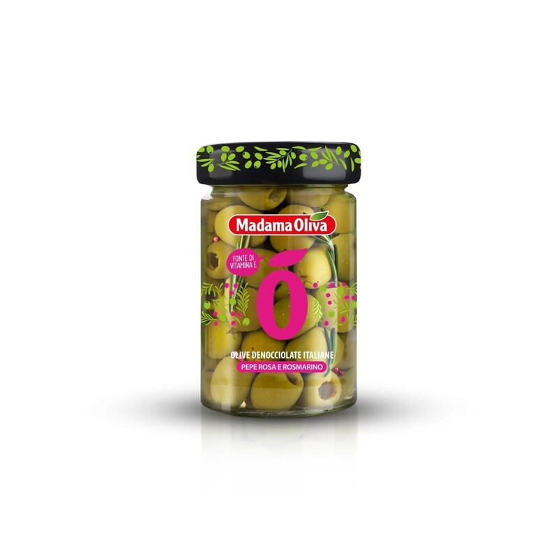 Antipasti Madama Oliva Oliver med Rosépeppar & Rosmarin, 140g