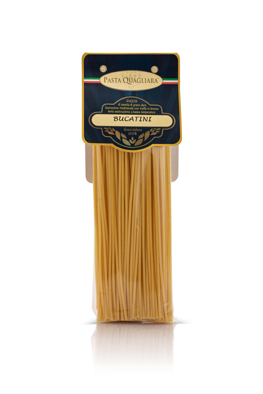 00 % italienskt vete! Quagliara väljer endast kvalitet för alla sina produkter, precis som denna Bucatini. En riktigt bra basingrediens till en mängd olika pastarätter - smakar precis som på restaurang i Italien!