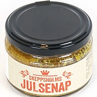 Skeppskolms julsenap som är sötsyrlig, grov och kryddig. Perfekt till julskinkan! Skeppsholms Senap vispar sina skånska senapsfrön för att få till den godaste och bästa smakupplevelsen.